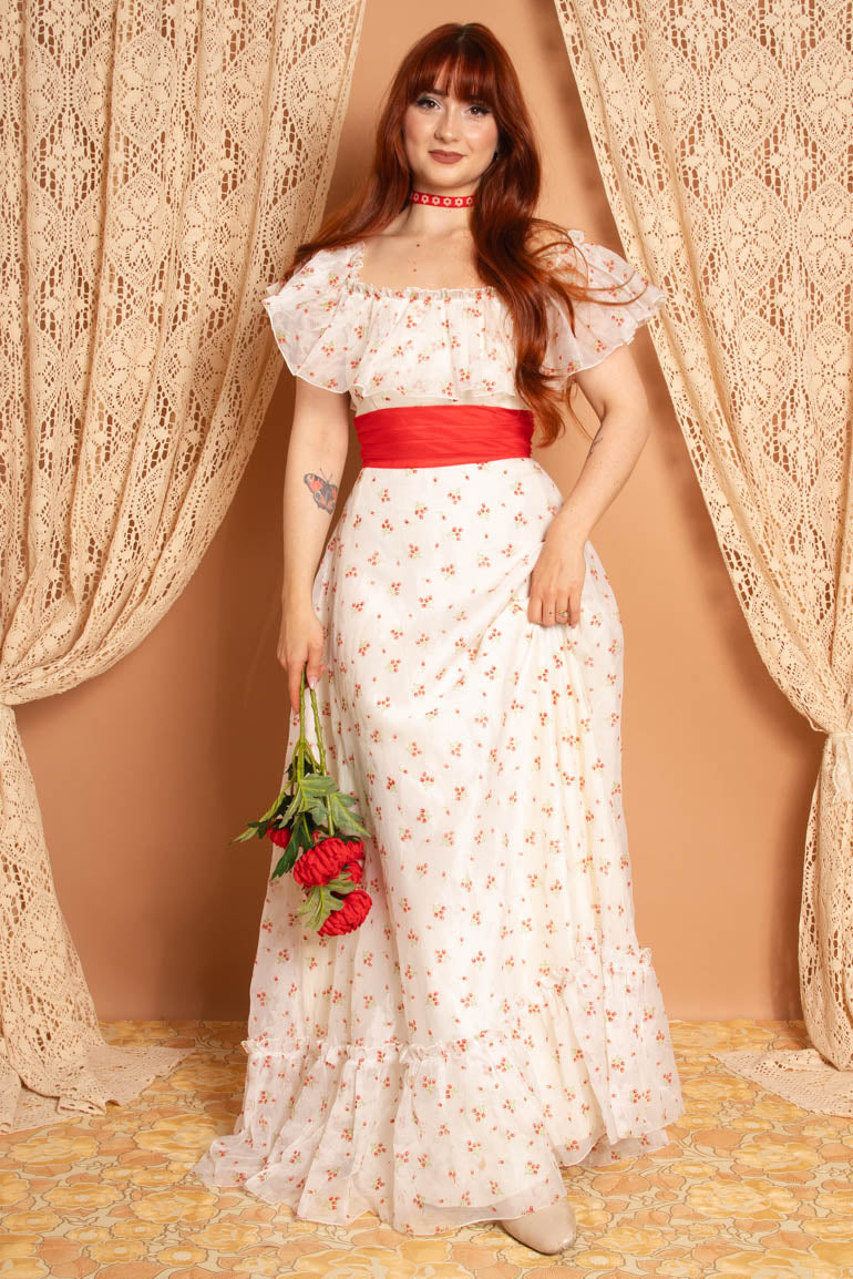 Source : www.thehippieshake.co.ukVintage 1970s Red and White Floral Maxi Dress – The Hippie Shake